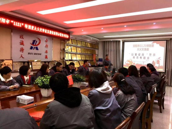 會(huì)議傳達(dá)學(xué)習(xí)了河南安陽(yáng)“11·21”特別重大火災(zāi)事故警示》專題教育片,學(xué)習(xí)了《河南安陽(yáng)市凱信達(dá)商貿(mào)有限公司“11·21” 特別重大火災(zāi)事故調(diào)查報(bào)告》。