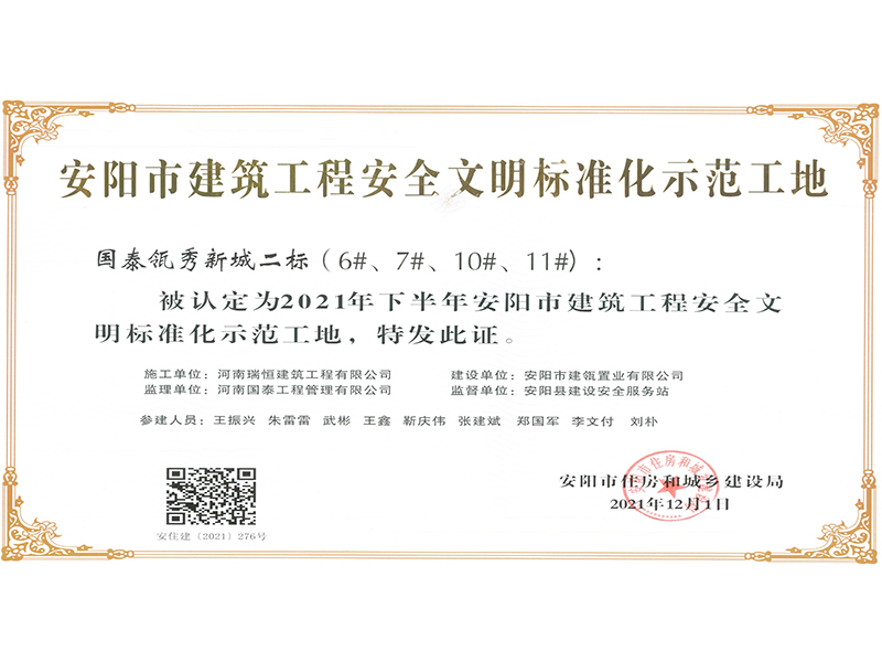 國泰瓴秀新城二標(biāo)段項(xiàng)目被評(píng)定為市建筑工程安全文明標(biāo)準(zhǔn)化示范工地